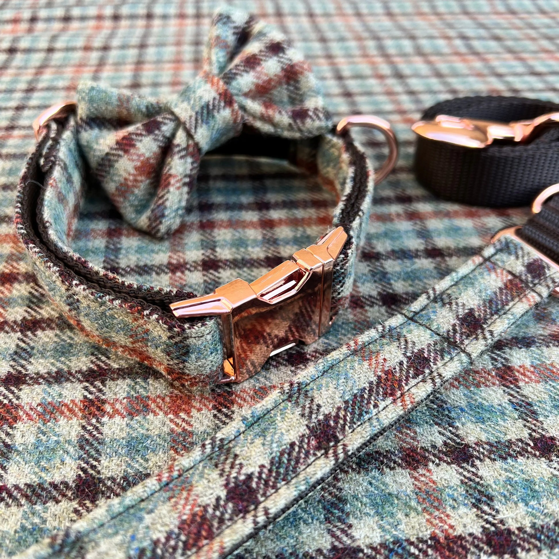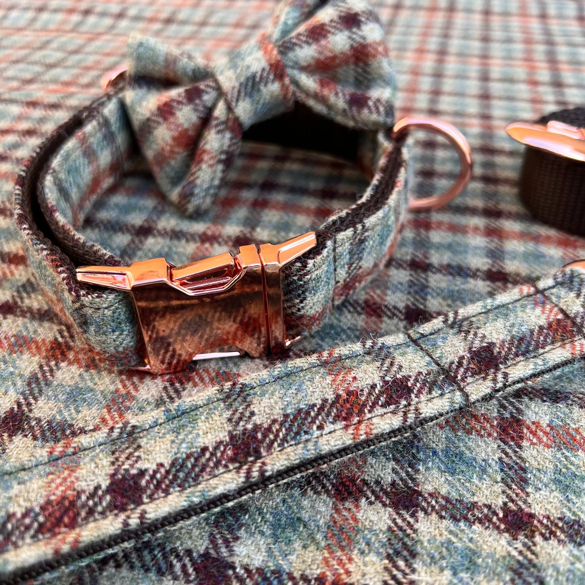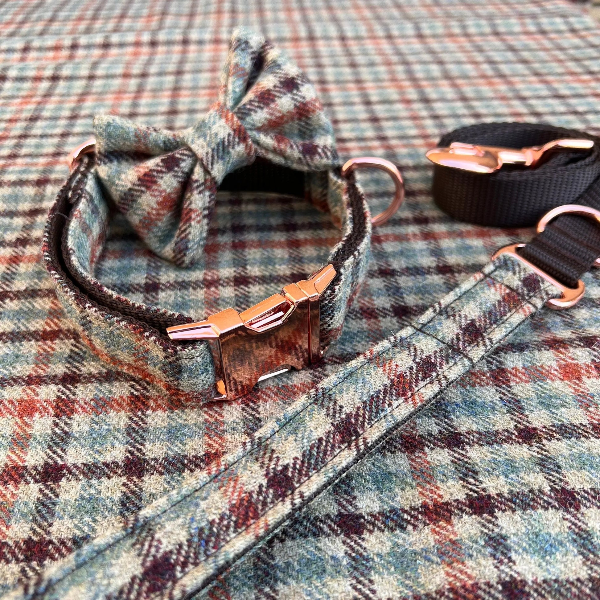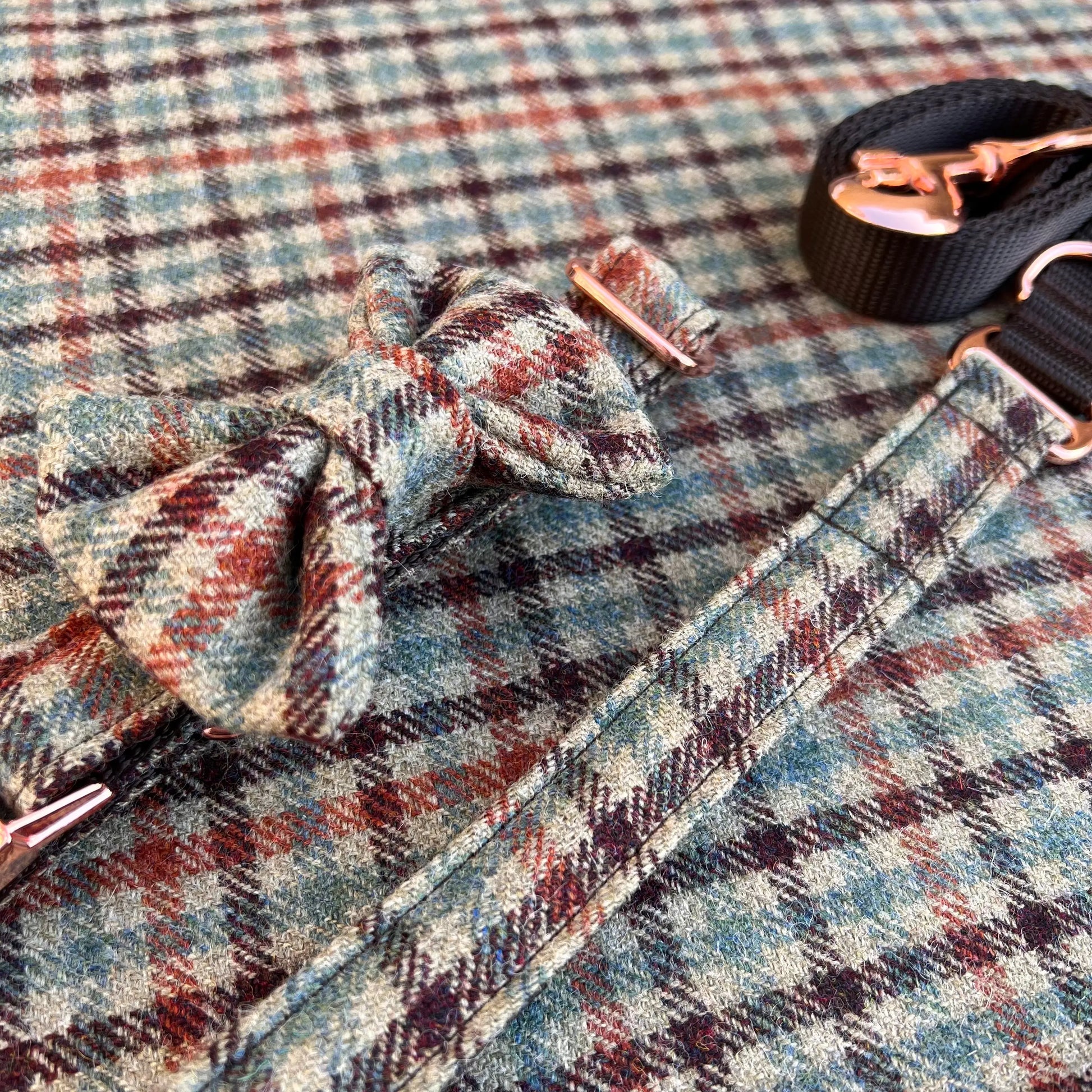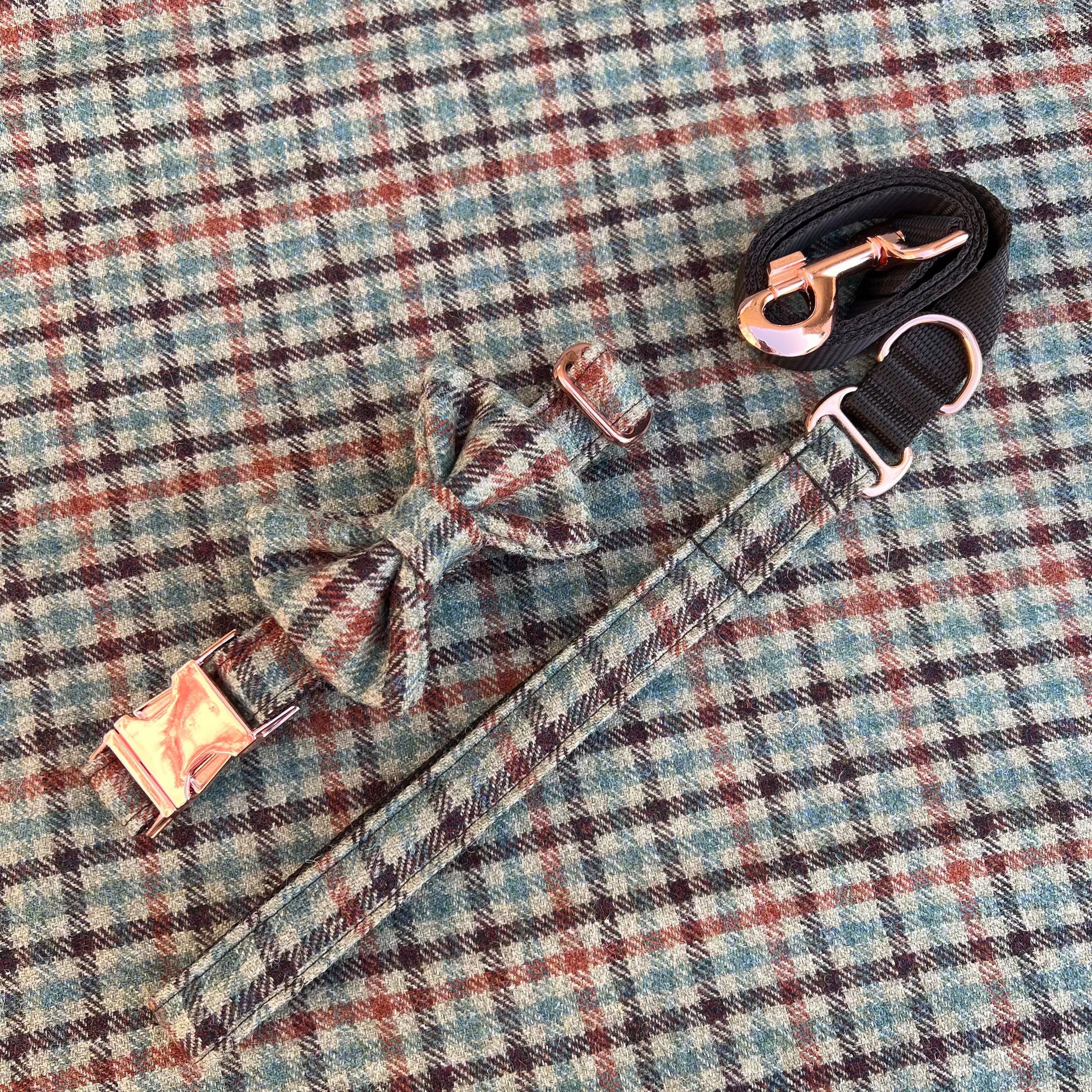 Gun Club Tweed Dog Collar Bow & Lead Set