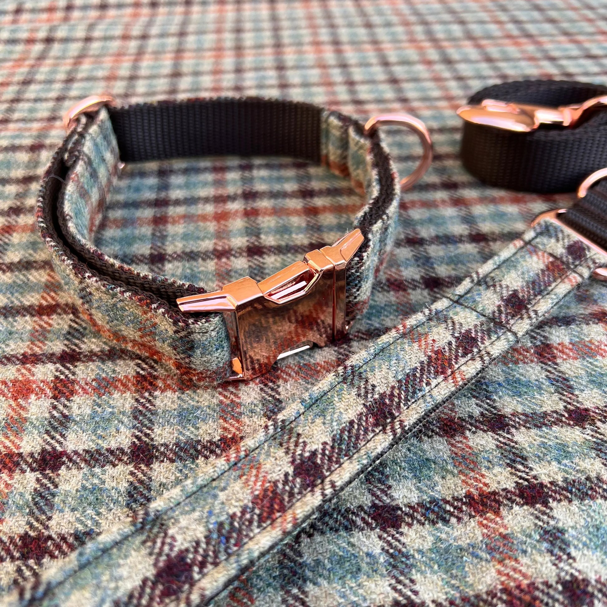Our Yorkshire Tweeds include a range of pure wool tartans and Shetland tweeds, woven in West Yorkshire, an area which has been world-famous since the 18th century for producing high-quality textiles. Tweeds are an icon of traditional Scottish, Irish, Welsh and English fashion and even regularly grace catwalks from Paris to New York. Now your dog can look as good as those on the catwalks, with one of our stunning Tweed Collar Sets.